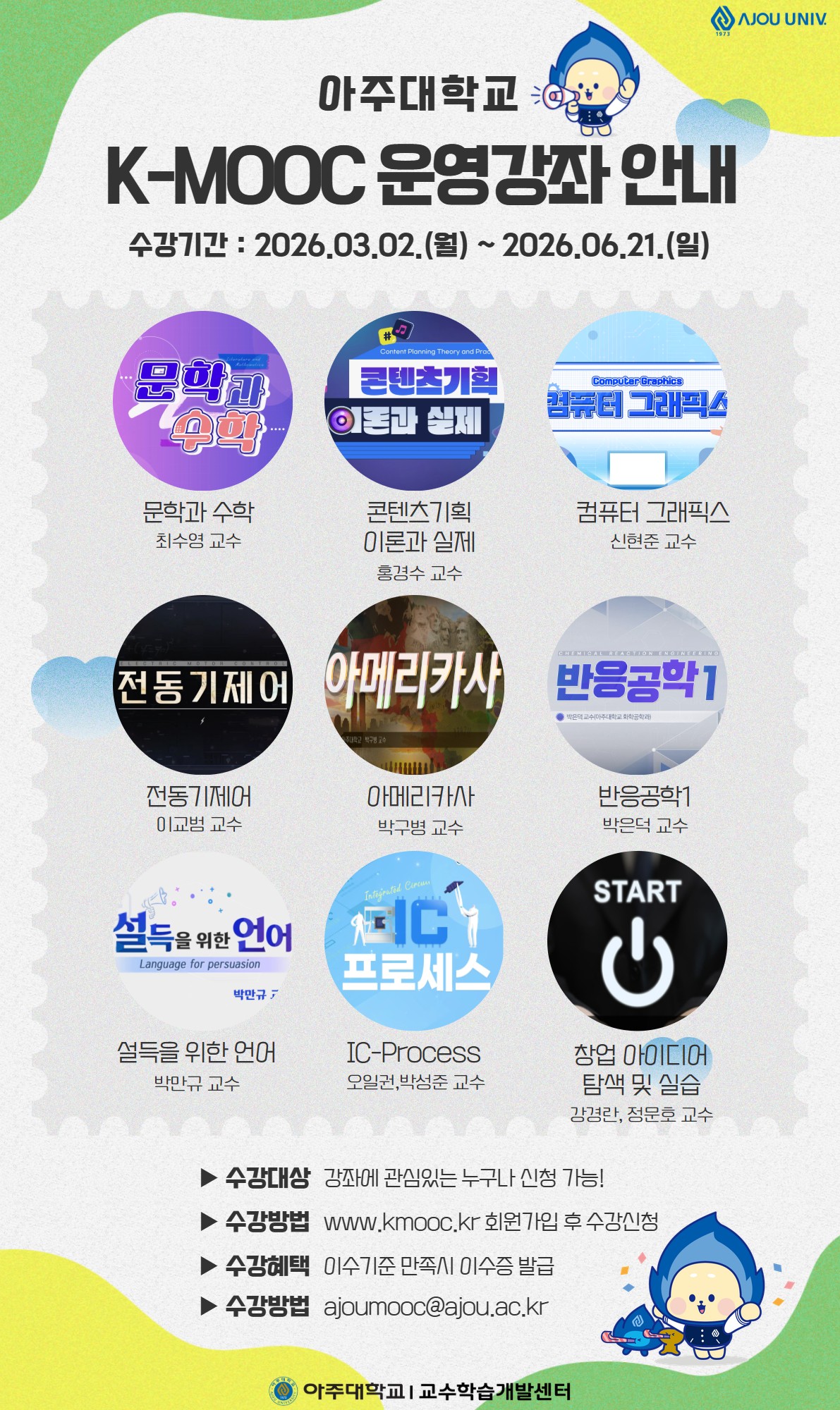 - 아주대학교 2026년 1학기 K-MOOC 강좌 수강 안내