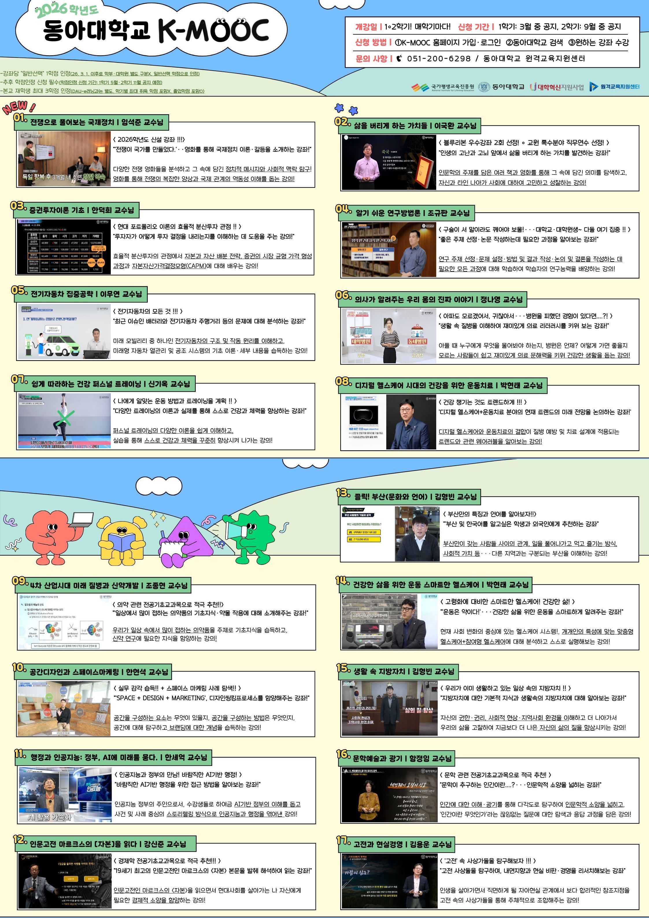 - 동아대학교 2026년 1학기 K-MOOC 강좌 수강 안내