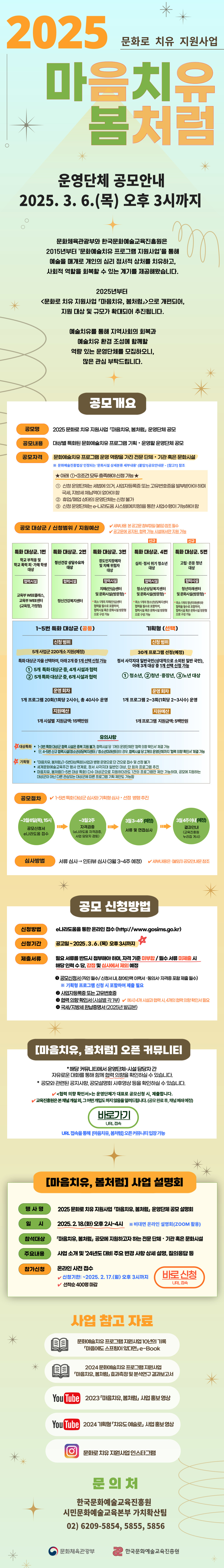 - [기타] [전체대학원] 2025 문화로 치유 지원사업 「마음치유, 봄처럼」공모