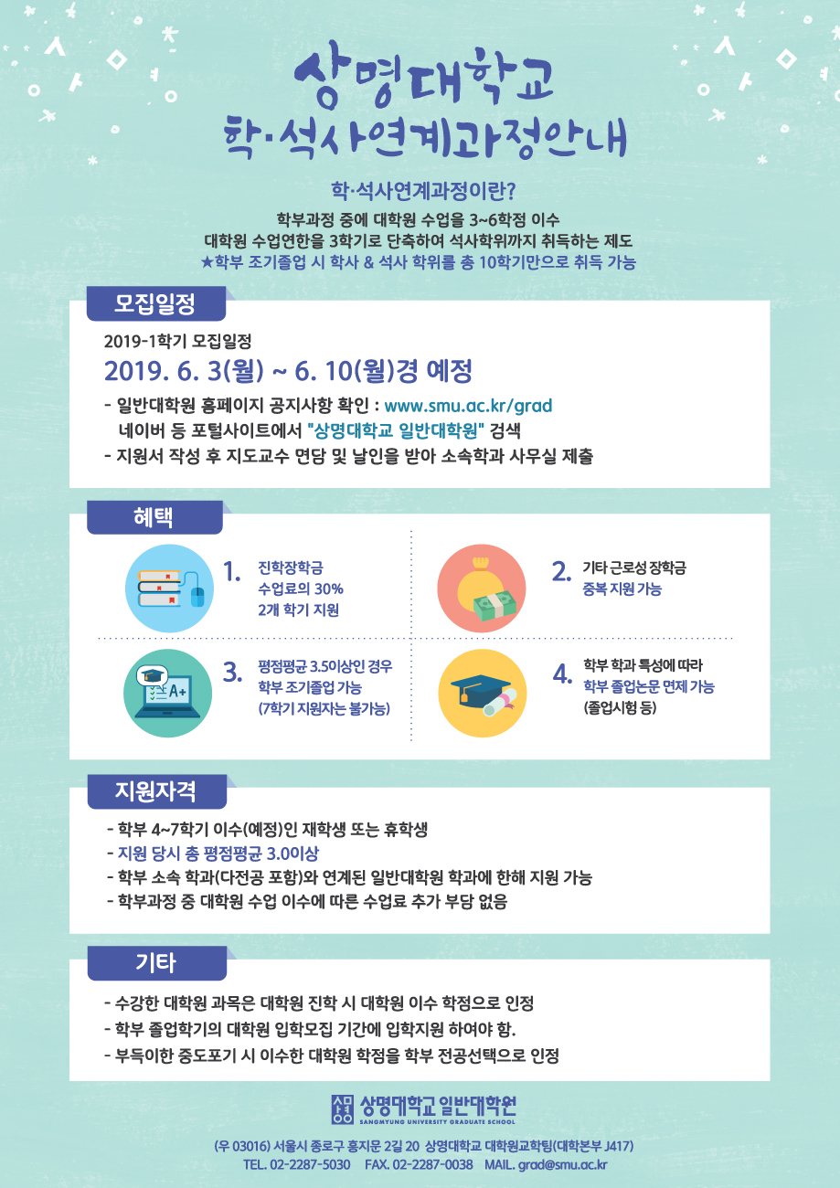 - [입학] 2019후기 학석사연계과정 지원자 모집(학부 재휴학생 대상)
