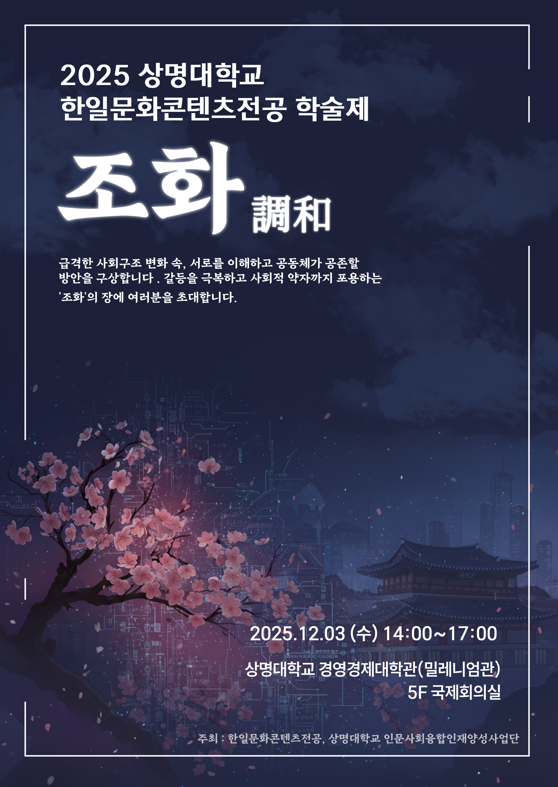 | 상명 [비교과] | [HUSS 인문사회융합인재양성사업단] '2025 사회구조분야 조화공모전' 안내 |