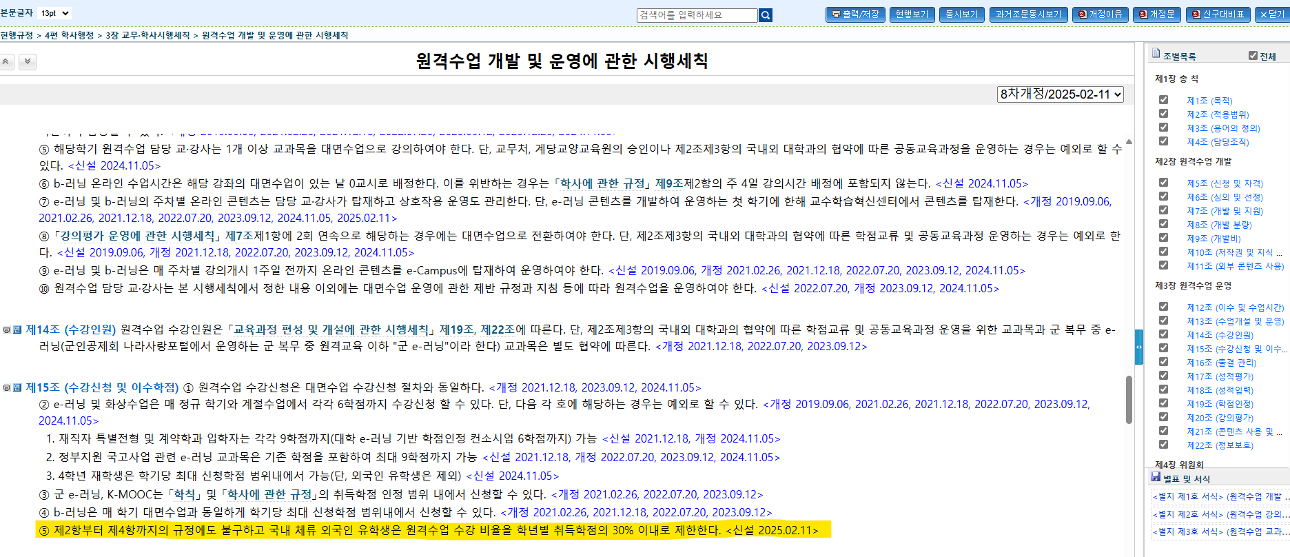 - [학사] 외국인유학생 수강신청시 원격수업 수강비율 안내