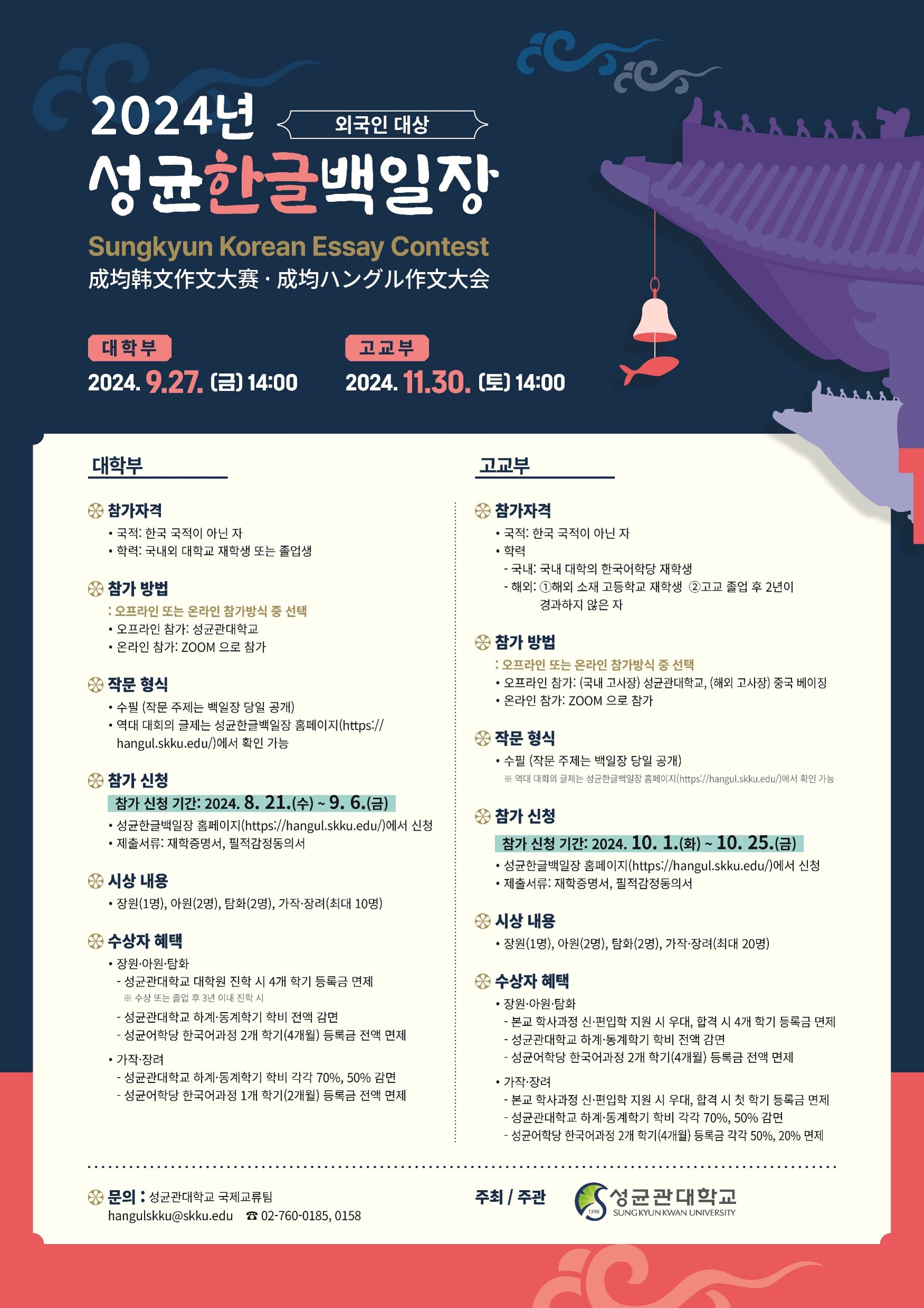 - [생활] 2024학년도 2학기 무료 한국어강좌 수강생 모집