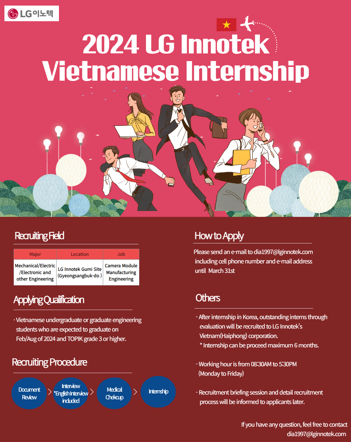 - [취업 및 진로] 24년 LG이노텍-베트남 유학생 인턴십 모집 안내