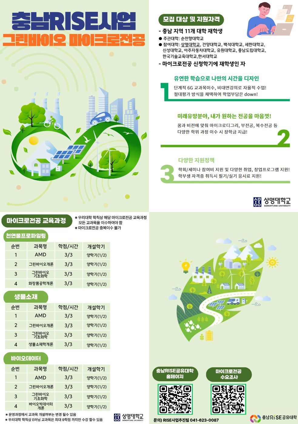 천안 [학사] [충남RISE사업] 2026학년도 충남RISE사업 그린바이오 마이크로전공 교육과정 안내 -