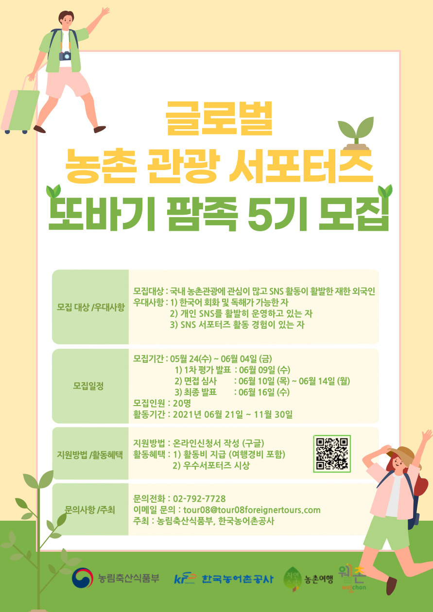 - [한국농어촌공사] 2021년 글로벌 농촌관광 서포터즈 모집 안내