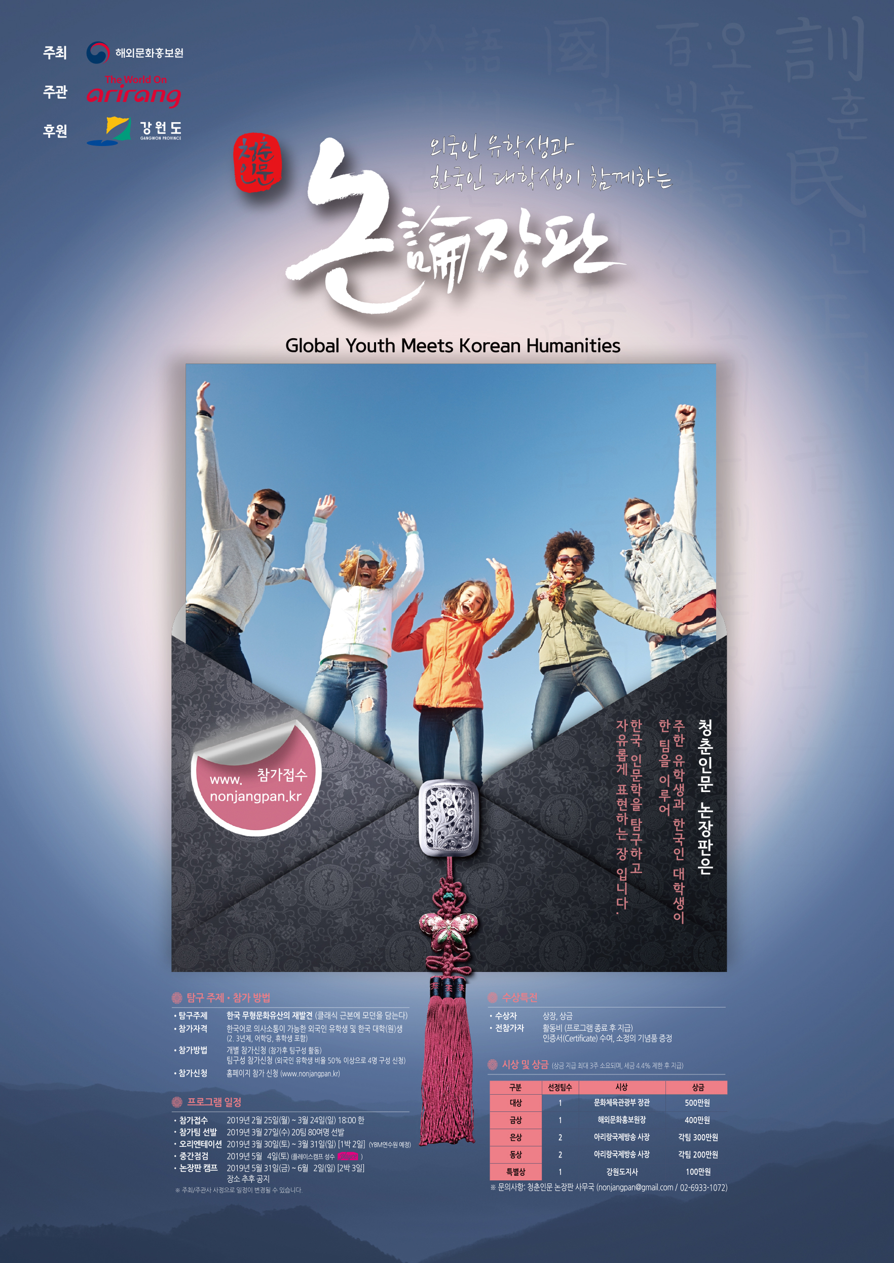 - 주한유학생 한국 인문학 탐구 '2019 청춘인문 논장판' 모집 안내