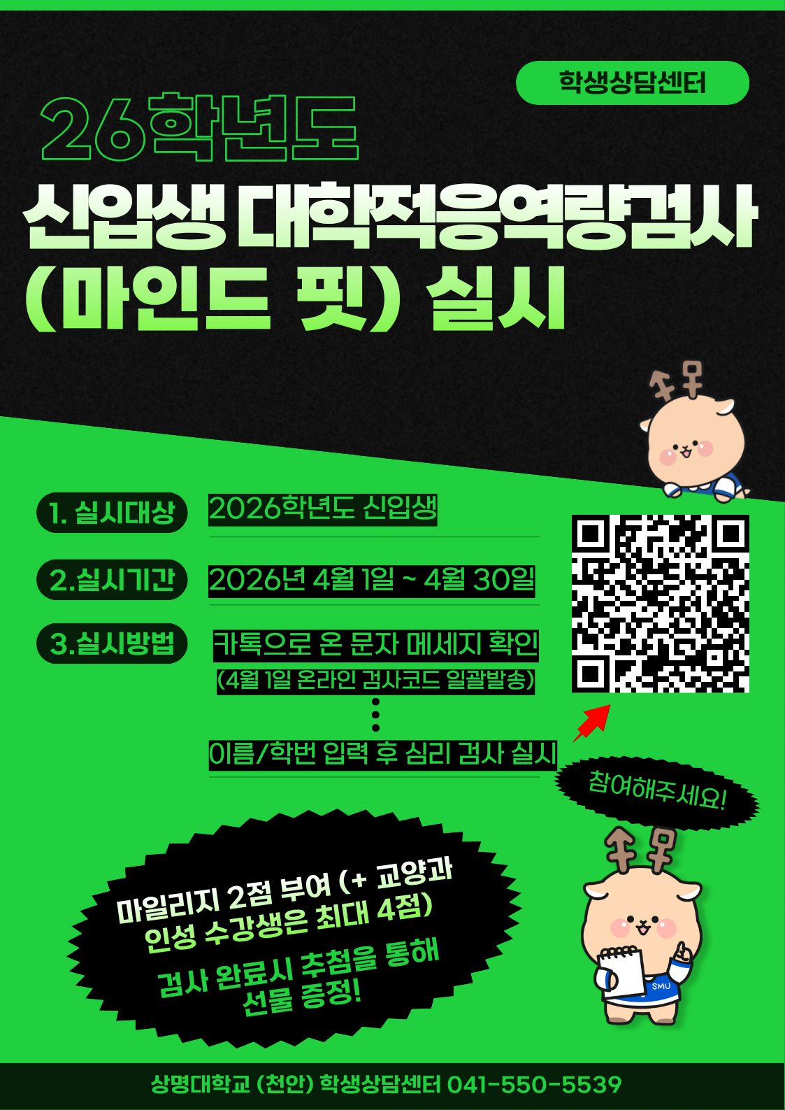 천안 [학생생활] [학생상담센터] 2026학년도 신입생 실태조사 실시 안내 -